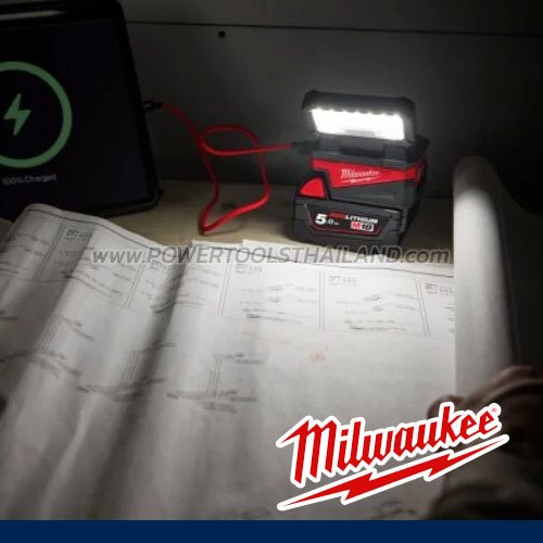 - ใช้งานได้ต่อเนื่องสูงสุด 110 ชั่วโมง ด้วยแบตเตอรี่ M18 5.0Ah (ในโหมดความสว่างต่ำ)