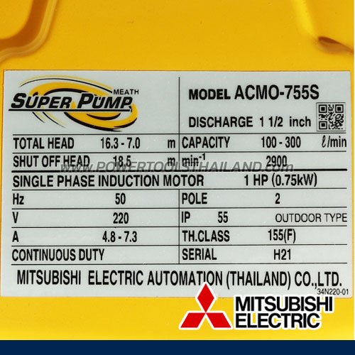 SKU : MITSUBISHI ปั๊มน้ำ ปั๊มสูบน้ำสำหรับสระว่ายน้ำ ปั๊มหอยโข่ง ปั๊มสูบสารเคมี ACMO-755S